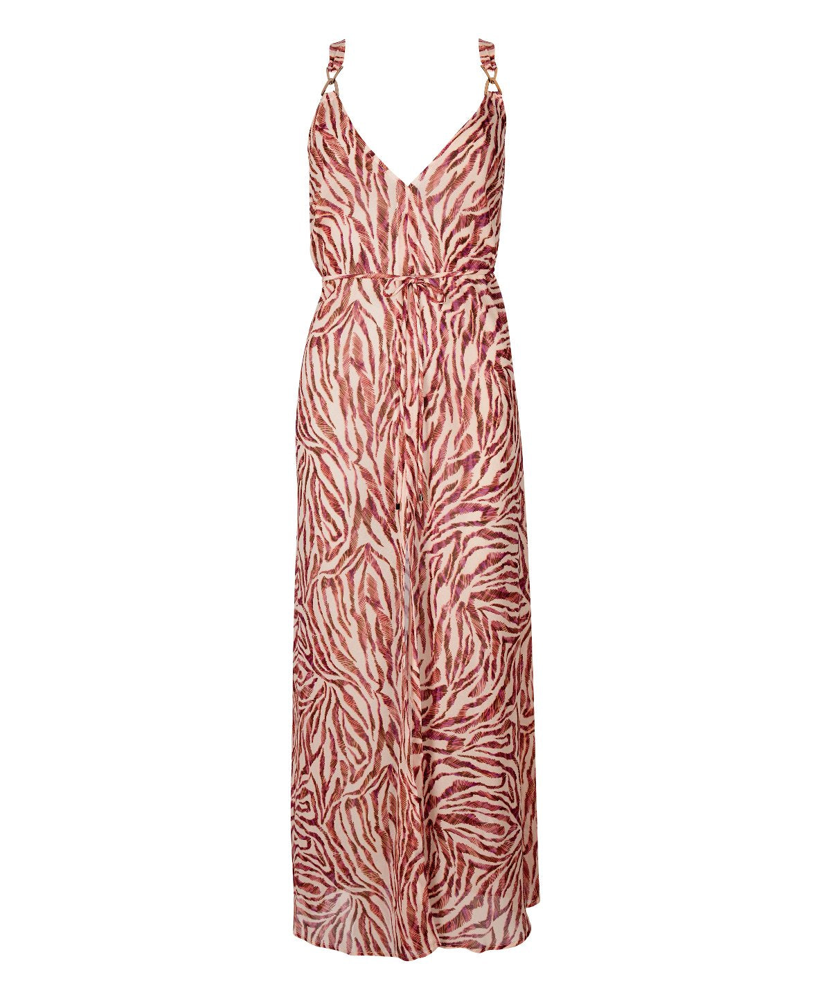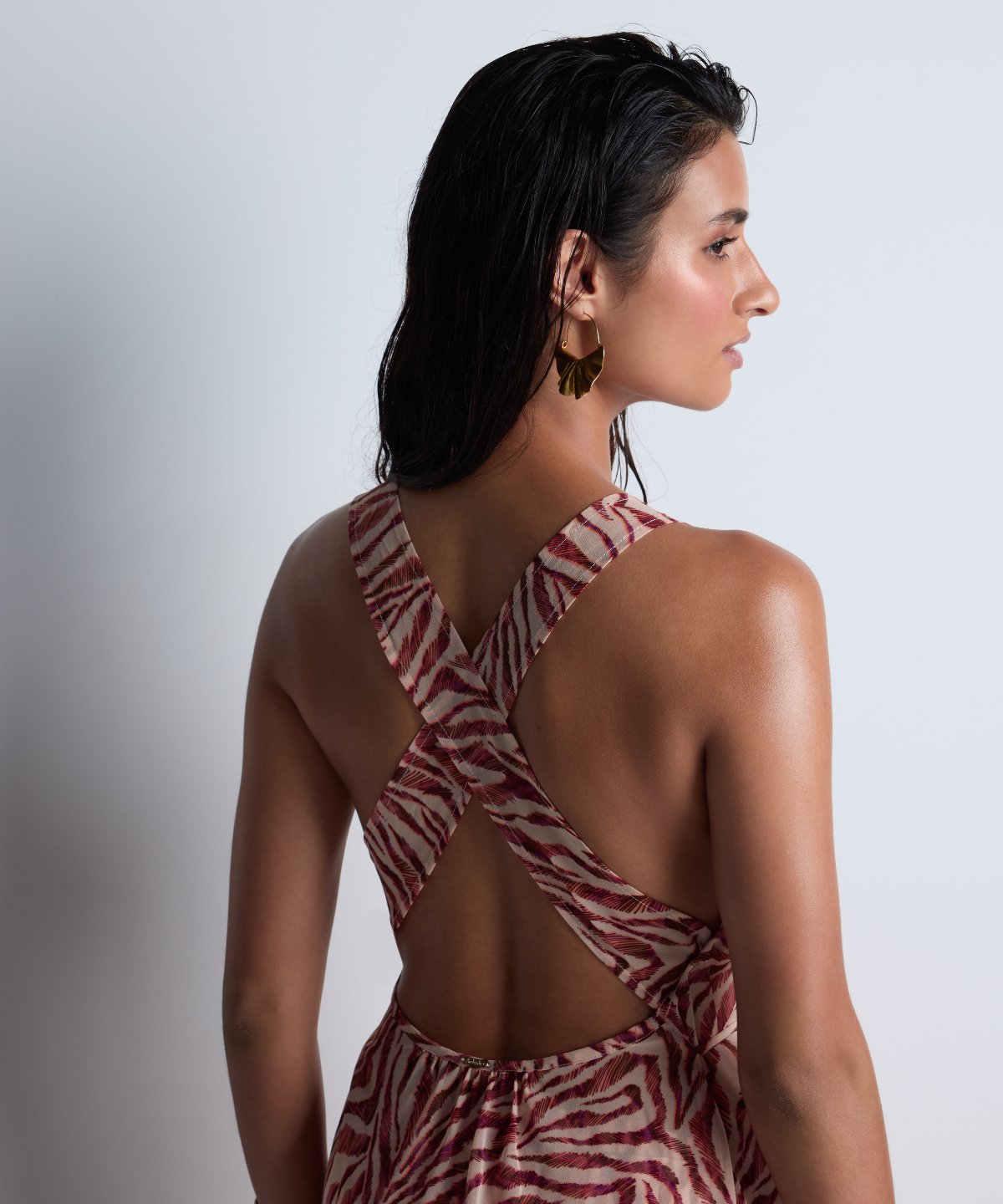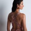 Tout en volutes, la robe Beach Walk déploie sa matière fluide jusqu’aux pieds. Offrant un décolleté profond, une fente subtilement sensuelle et une taille élégamment marquée par une ceinture amovible, elle se pare de détails dorés précieux et d’un dos nu graphique résolument sexy pour une allure vaporeuse mais sophistiquée.