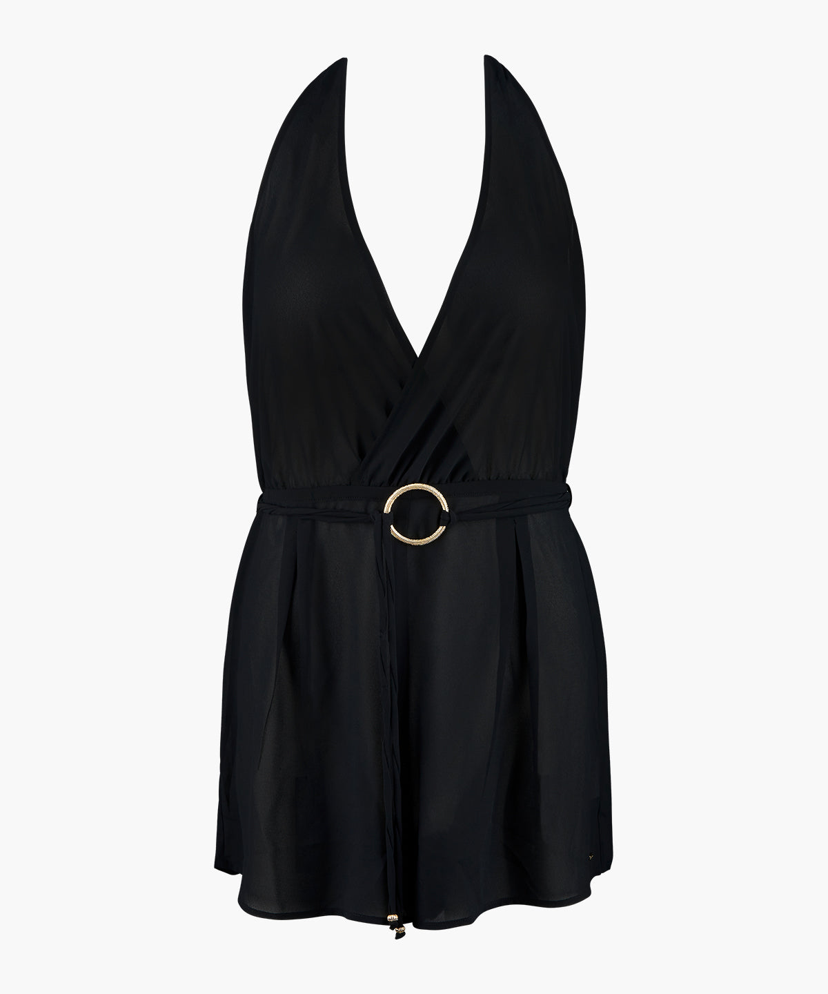 - Un combishort léger et sensuel avec un décolleté vertigineux et un dos nu. Une ceinture cordon amovible avec embouts dorés permet d’ajuster le combishort à sa taille