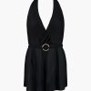 Offrant un décolleté en V très profond et des bretelles larges à nouer autour du cou, le combishort Evening Sand se pare d’un dos nu résolument sexy dans une coupe originale, confortable et moderne. À la taille, une ceinture amovible avec embouts dorés confère à l’ensemble une touche d’élégance sophistiquée.