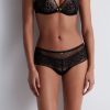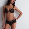 Avec sa forme confortable et sexy, le shorty Illusion Fauve se porte taille basse pour un effet résolument moderne. Déployant une dentelle sensuelle sur les hanches, il souligne, dans le dos, le galbe des fesses de son tulle plumetis délicat et se pare, au creux des reins, d’un bijou lumineux.
