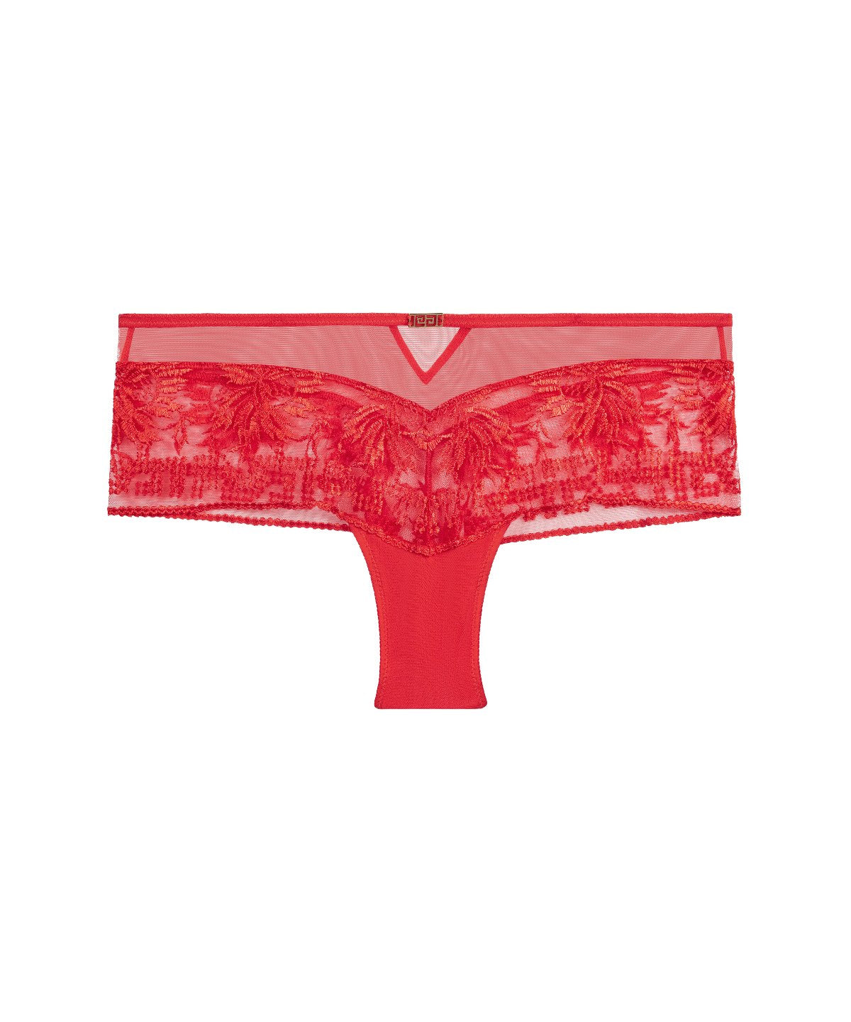 Offrant une coupe moderne, le shorty Rules of Attraction se pare d’une bande brodée aux motifs exclusifs, surmontée par un empiècement en tulle transparent très sensuel, pour un effet affiné et sexy qui met en valeur les hanches. Dans le dos, une ouverture séduisante dévoile subtilement le creux des reins.