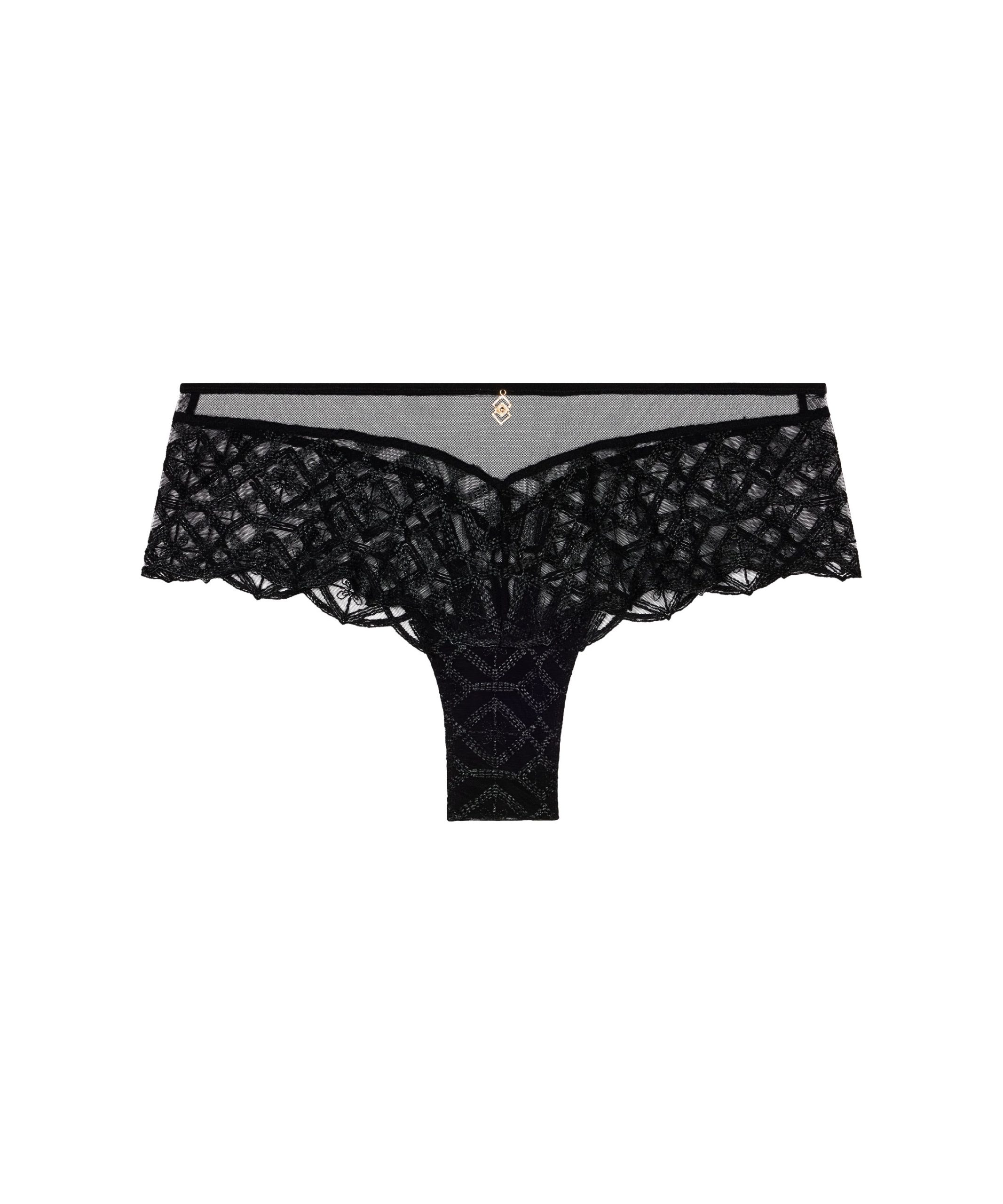 Dessinant une silhouette moderne, le shorty Sense of Illusion joue des contrastes entre une broderie originale et un tulle transparent pour un effet hypnotique très séduisant. Sublimée par une basque qui se dépose sur le haut de la jambe, sa coupe couvrante et confortable met subtilement en valeur les courbes.