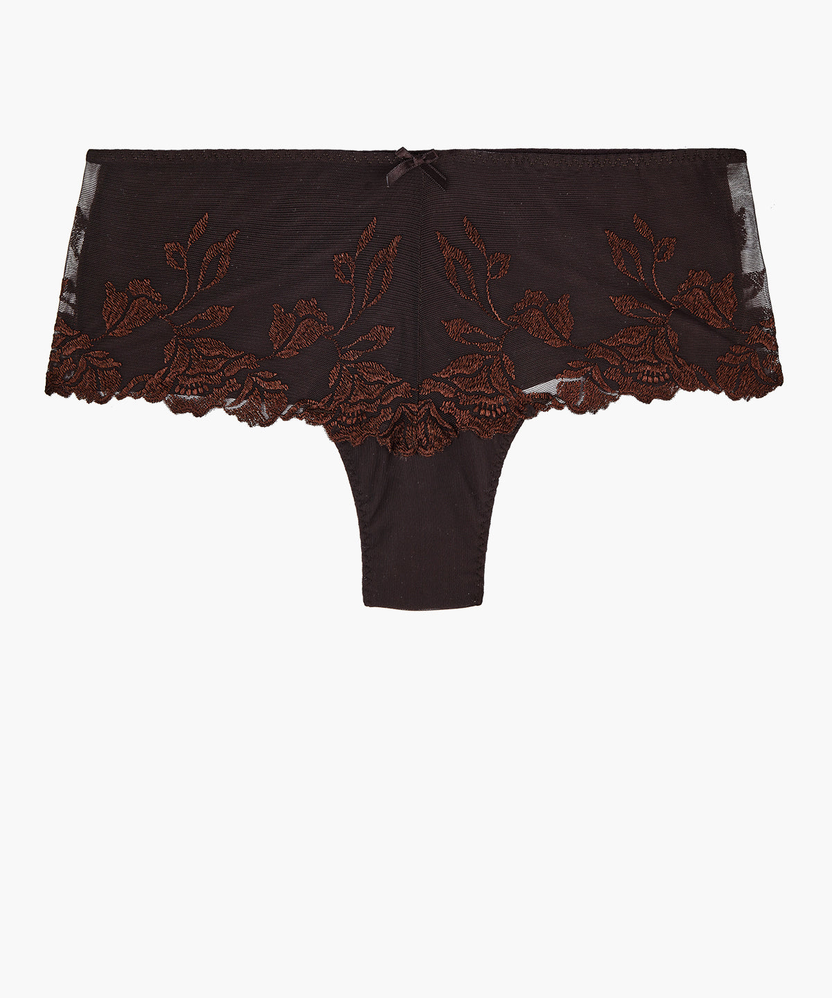 Tout en jeu de transparence, le shorty Softessence offre une coupe sexy, confortable et flatteuse. Large sur les côtés pour mettre en valeur les hanches et légèrement échancré sur les fesses, il associe une broderie florale à l’effet velours sensuel et un tulle très doux dans un modèle résolument moderne.