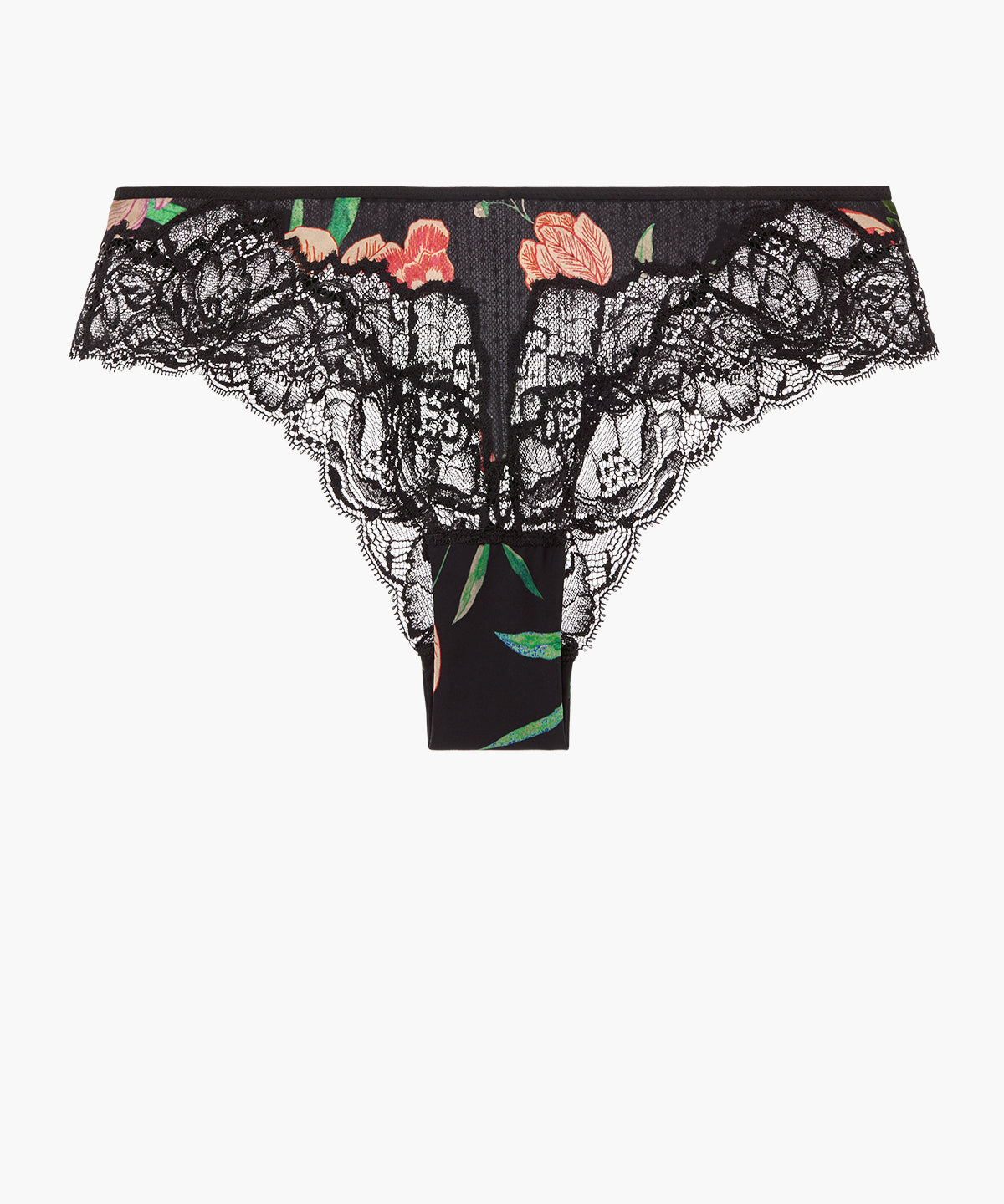 Avec sa forme jeune et moderne, dégagée sur les fesses pour un effet plus sexy, le shorty hipster Sweet Folk prolonge le haut de la jambe par une dentelle incrustée raffinée et s’habille d’un imprimé floral aux inspirations bohêmes en maille Lycra® fluide et légère qui devient tulle plumetis dans le dos pour des jeux de transparence, tout en séduction et en confort.
