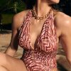 Résolument sexy, le maillot de bain une-pièce nageur coque Fierce Spirit habille le buste de son imprimé animalier exclusif. Offrant un décolleté profond avec anneau brillant, il dévoile sensuellement le dos. Confortable, il associe l’élégance d’un nouage autour du cou et le maintien conféré par une attache avec fermoir doré.