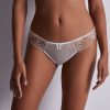 Couvrante, la culotte italienne Hypnolove sublime les hanches et le galbe des fesses de sa broderie graphique aux reflets dorés séduisants, rehaussant un tulle délicat et confortable. Derrière, une découpe graphique avec liens entrecroisés dans un esprit bondage subtil révèle sensuellement le creux des reins pour un effet résolument sexy.