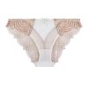 Couvrante, la culotte italienne Hypnolove sublime les hanches et le galbe des fesses de sa broderie graphique aux reflets dorés séduisants, rehaussant un tulle délicat et confortable. Derrière, une découpe graphique avec liens entrecroisés dans un esprit bondage subtil révèle sensuellement le creux des reins pour un effet résolument sexy.