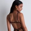 Tout en tulle italien à l’esprit peau de serpent, le body Animal Soul souligne la taille, accentuant un décolleté à la profondeur vertigineuse. Dans le dos, un jeu graphique de liens style bondage met en valeur le galbe des fesses et le creux des reins pour une allure résolument sexy.