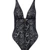 Tout en tulle italien à l’esprit peau de serpent, le body Animal Soul souligne la taille, accentuant un décolleté à la profondeur vertigineuse. Dans le dos, un jeu graphique de liens style bondage met en valeur le galbe des fesses et le creux des reins pour une allure résolument sexy.