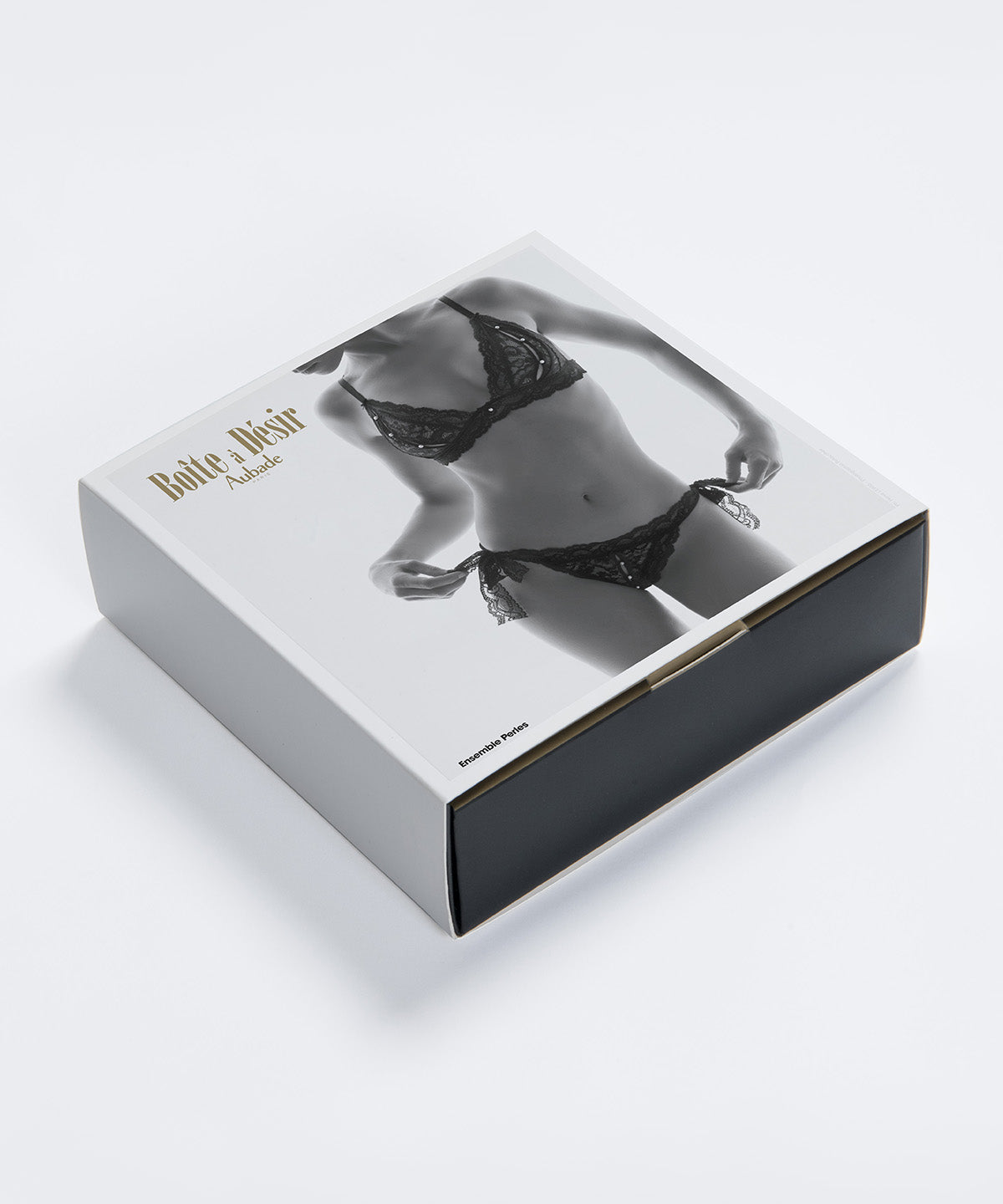 Chic et sexy, l’ensemble tout en dentelle noire de cette Boîte à Désir Aubade, est un appel aux jeux érotiques. Ses ouvertures suggestives sur les bonnets triangle, ainsi que sur l’avant de la culotte nouée, se déboutonnent à l’aide de délicates perles de verre. La culotte est fendue pour plus d’érotisme… La Boîte à Désir Aubade en taille unique est le parfait cadeau lingerie.