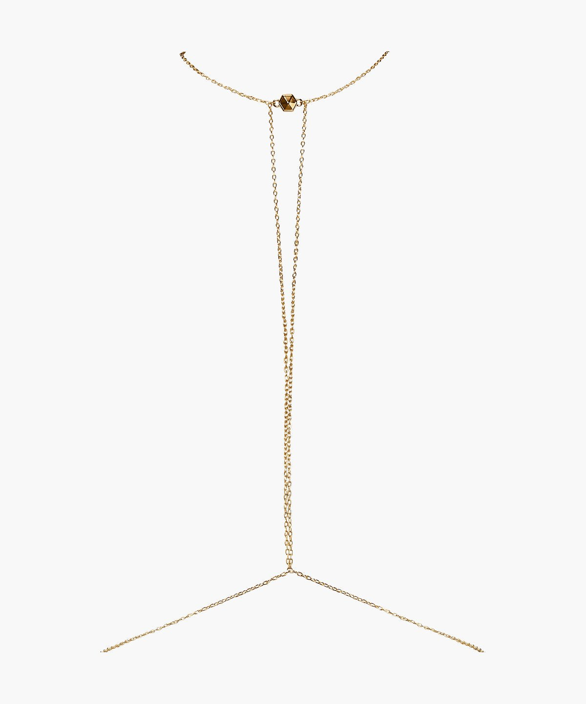 - Un bijou de corps en zamac doré à porter par-dessus les parures de la collaboration illumine votre taille