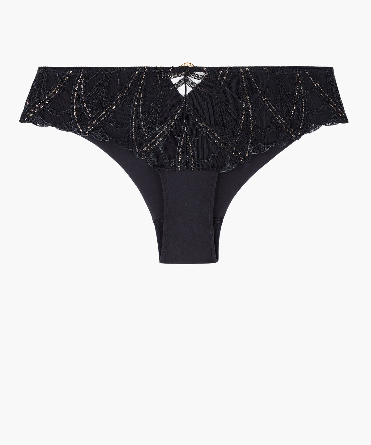 Offrant une forme shorty clean-cut confortable et invisible sous les vêtements, la culotte hipster Elie Saab x Aubade pare les hanches de sa broderie graphique transparente. Dans le dos, un tissu mat, doux et léger, met en valeur le galbe des fesses dans une coupe couvrante, pensée pour le quotidien.