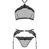 - Ensemble tout en transparence composé d’une culotte mini-coeur résolument sexy avec son ouverture dans le dos et d’un soutien-gorge brassière tour de cou très tendance