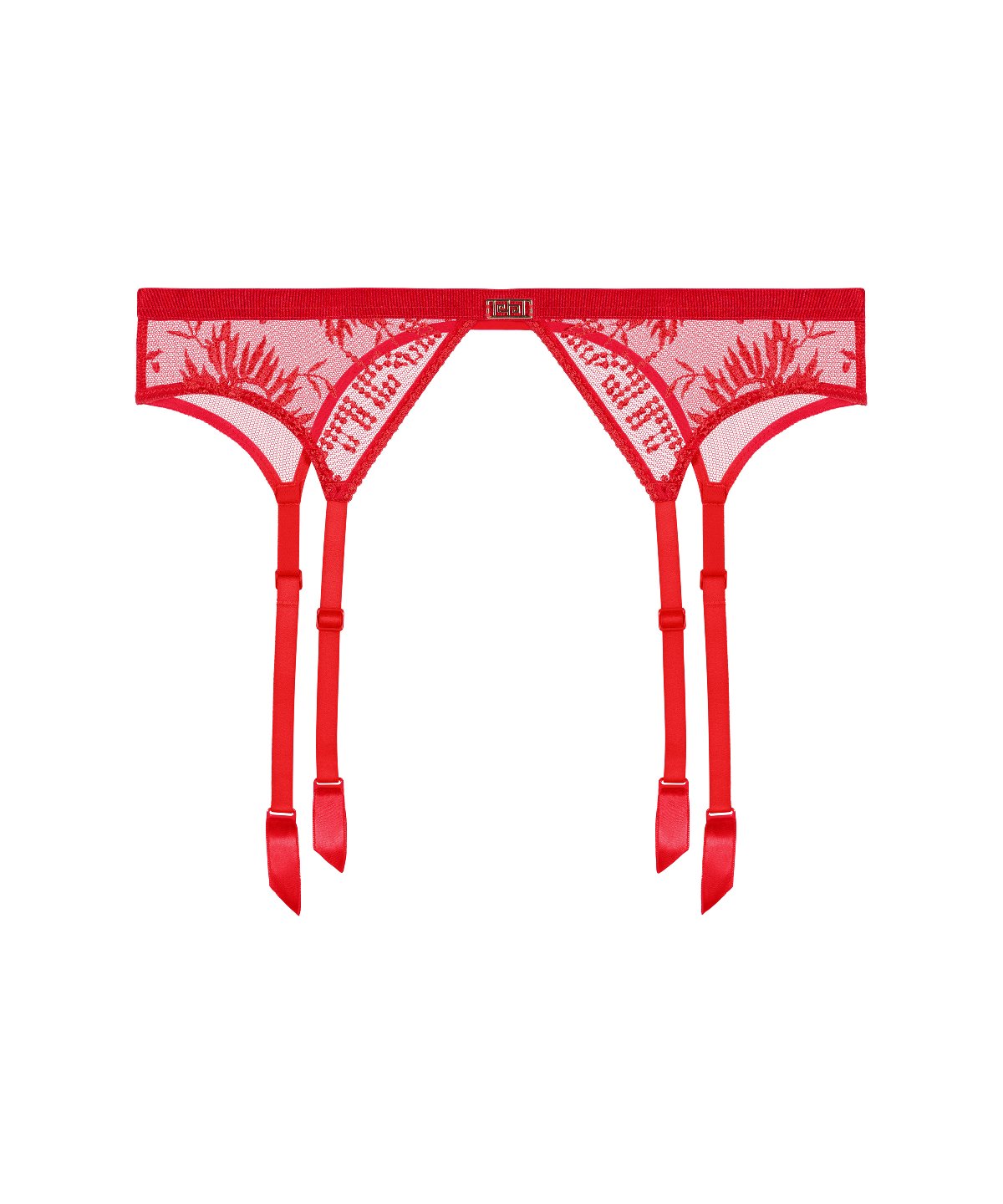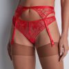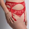 Pièce résolument sexy de cette collection, le porte-jarretelles Rules of Attraction dépose sur les hanches les motifs modernes et stylisés de sa broderie élégante, illuminée par un bijou ciselé qui illumine la taille. Dans le dos, il se pare entièrement de tulle transparent pour un effet de dévoilement très sensuel.