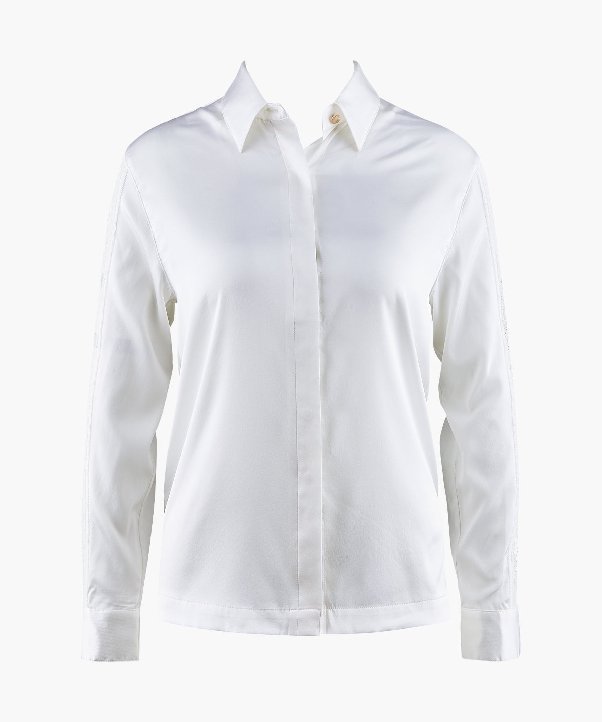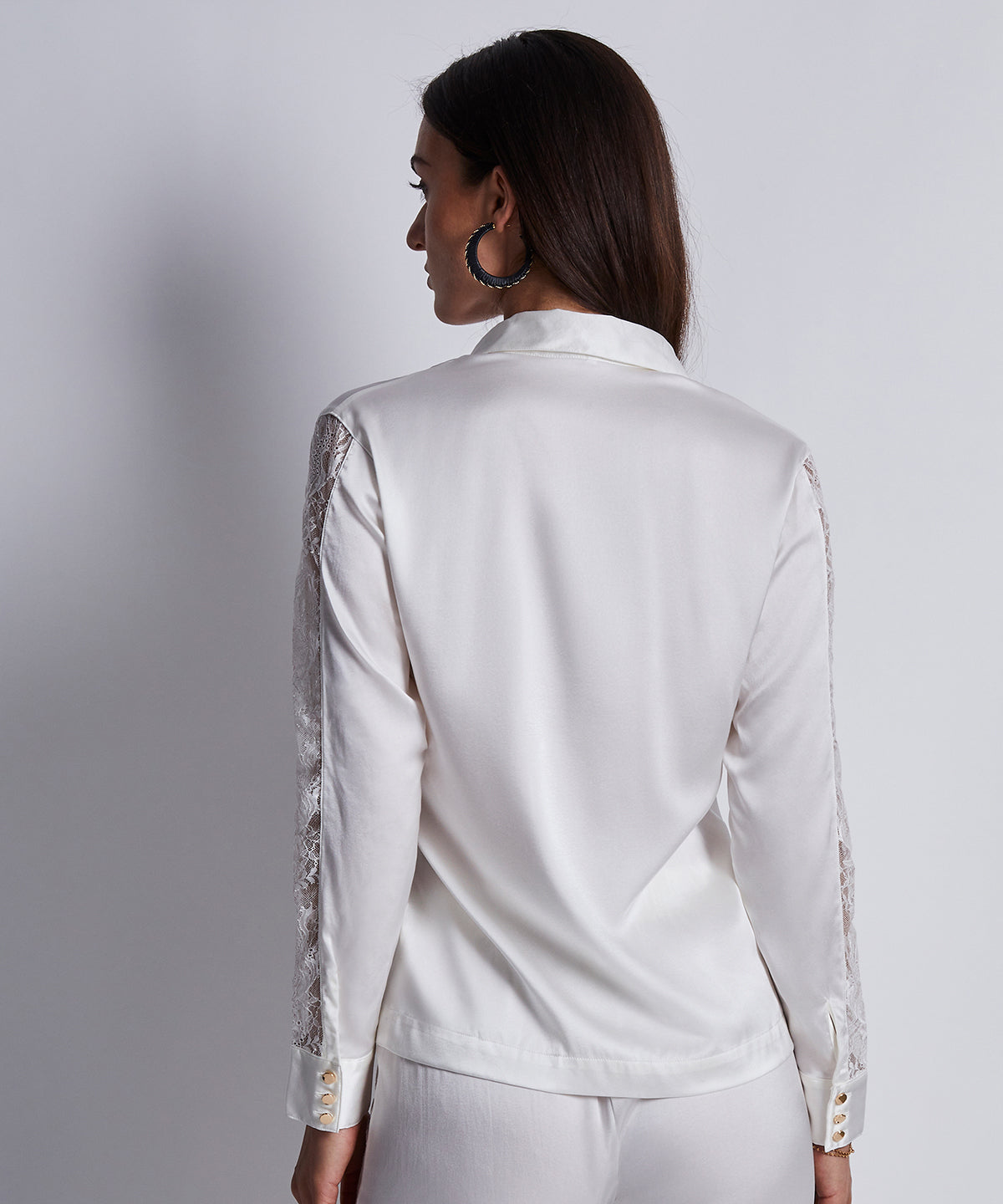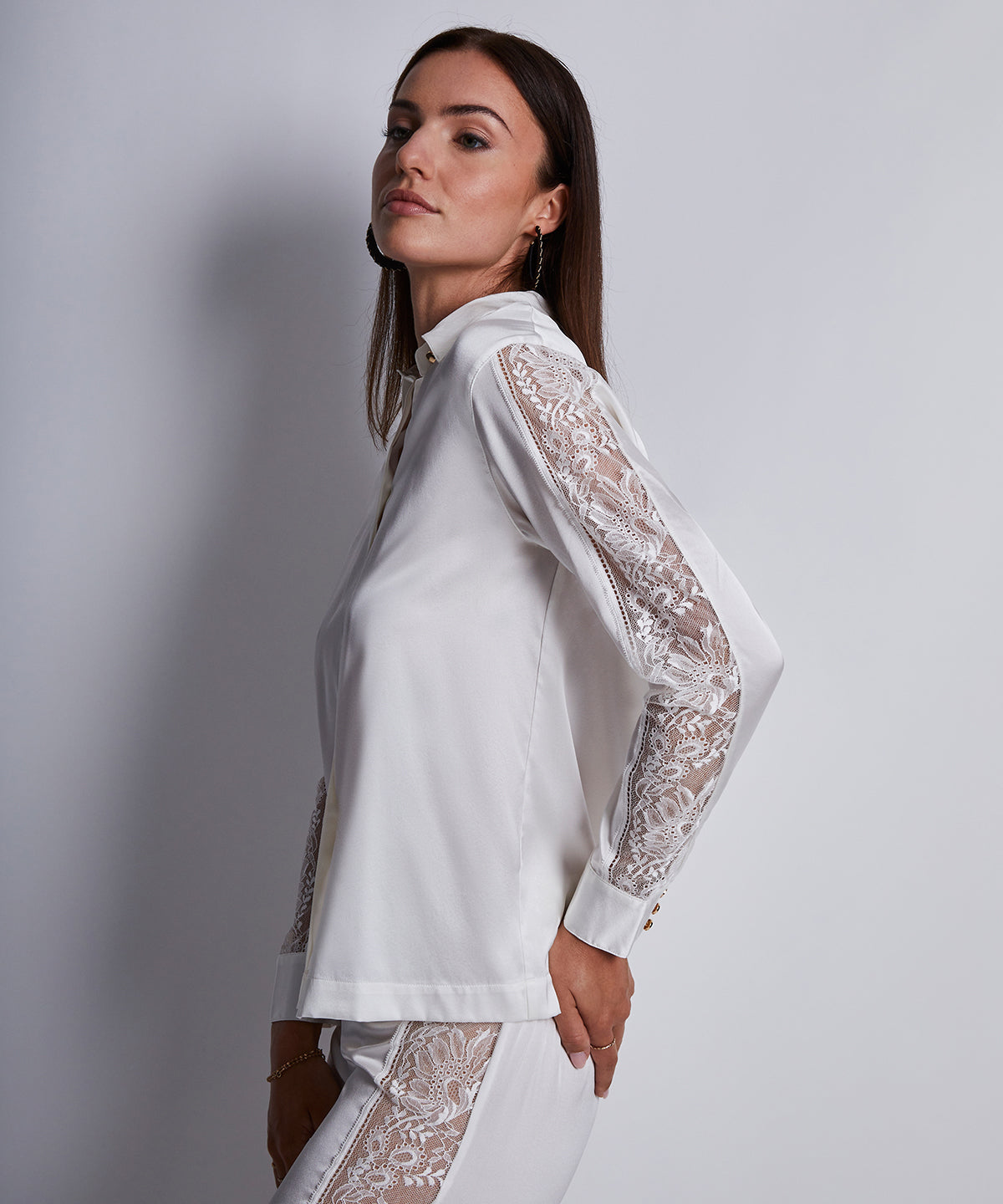 - Une chemise élégante qui dévoile la peau à travers ses empiècements de dentelle