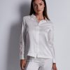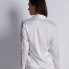 Conçu pour être porté de jour comme de nuit, le chemisier Midnight Whisper se prête à toutes les occasions. Entièrement en soie brillante et sensuelle, il se pare d’un élégant boutonnage rehaussé par un bouton doré sur le col. Sur les manches, des empiècements en dentelle sexy dévoilent la peau.