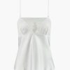 Fluide, le top fines bretelles Midnight Whisper déploie sur le buste une soie sexy et confortable. Créant des effets de contraste entre transparence et opacité très sensuels, un empiècement en dentelle élégante vient se déposer sur le décolleté et se poursuit dans le dos dans une forme graphique très originale.