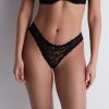 Légèrement échancrée pour affiner les hanches et allonger la jambe, la culotte italienne Rosessencedéploie sa dentelle transparente aux motifs de roses, surmontée par un bijou doré avec strass. Couvrante et flatteuse, elle met en valeur le galbe des fesses pour une silhouette tout en élégance et en séduction.