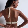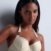 Avec son effet push-up naturel, le haut de maillot de bain plunge coque Shimmering Waters offre un décolleté ouvert très sexy, illuminé par des touches dorées graphiques raffinées au départ des bretelles. Derrière, l’attache en tour du cou permet un dos nu résolument sensuel pour une silhouette tout en séduction.