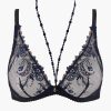 Disponible jusqu’au bonnet F, le soutien-gorge triangle armatures Amour Précieux déploie sa broderie florale raffinée haut sur la poitrine dans une forme confortable et sexy. Son décolleté plongeant est sensuellement habillé par une guipure façon sautoir qui part de l’entregorge et se noue derrière la nuque avec un ruban satin.
