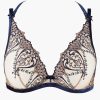 Avec sa broderie brodée bleu profond et champagne rosé habillant tout le décolleté et se prolongeant jusque sur un motif amovible dans le dos, le triangle plunge Cœurs Enlacés assure un maintien optimal, tout en offrant un soutien-gorge plongeant, confortable et sexy qui se laissera volontiers dévoiler avec audace sous une chemise ouverte ou un haut dos nu.