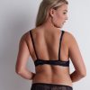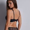 Tout en jeux de transparence, le soutien-gorge triangle plunge Danse des Sens déploie sa dentelle florale jusqu’aux épaules pour un décolleté sexy, dont la profondeur est accentuée par un nœud satiné à l’entregorge. Confortable mais séduisant, il présente un agrafage arrondi qui confère à l’ensemble une touche de modernité indéniable.