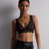 Ce Triangle Bralette offre une forme très mode d’un raffinement exquis. Les dentelles dessinent un triangle de broderies délicates où une écaille s’ajoute pour sublimer le dessin floral. Depuis le haut des épaules jusqu’à la courbure des seins, cette pièce sans armature promet une légèreté sans pareille.