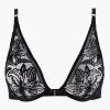 Sans armatures, le soutien-gorge triangle Feeling Myself offre une forme légère et résolument moderne, pensée pour les femmes sensibles. Habillant son décolleté profond d’une dentelle florale délicate jusqu’à l’épaule, il se pare d’effets de transparence très sensuels. Dans le dos, les bretelles se rejoignent en une forme graphique très originale.