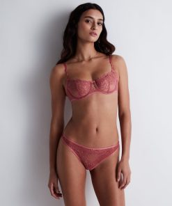 Avec sa dentelle remontant haut sur la poitrine, le soutien-gorge plunge foulard Gold Pleasure en souligne le galbe et confère au décolleté un effet push-up très sexy, sublimé par une chaînette façon sautoir. Derrière, les doubles bretelles offrent maintien et confort, tout en apportant un style résolument moderne à l’ensemble.