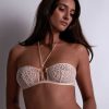 Résolument tendance, la brassière Illusion Fauve, sans armatures, déploie sa dentelle aux motifs animaliers dans un modèle léger et confortable. Largement ouverte pour un décolleté vertigineux, elle se pare, à l’entregorge, d’un anneau doré. Dans le dos, elle se prolonge en un tour du cou sensuel.