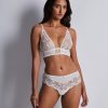 Léger et moderne, le soutien-gorge triangle bralette Kiss of Love, sans armatures, déploie jusqu’à l’épaule sa dentelle florale transparente. Offrant un décolleté profond, il se pare d’une broderie entrelacée sexy à l’entregorge. Sous la poitrine, une large bande façon bustier assure confort et maintien pour une silhouette tout en sophistication.