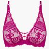 - Véritable signature de la ligne, un motif de liens croisés pare les basques des soutiens-gorge en revisitant les codes du bondage