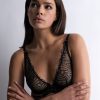 - Véritable signature de la ligne, un motif de liens croisés pare les basques des soutiens-gorge en revisitant les codes du bondage