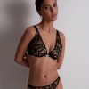 Le soutien-gorge triangle ultra plunge Elie Saab x Aubade allie broderie sculpturale aux touches perlées de lurex, détail doré à l’entregorge et dos en tissu mat léger très moderne. Déployant sa matière haut sur le buste, il offre une forme couvrante et confortable à l’effet seconde peau très sensuel.