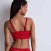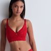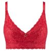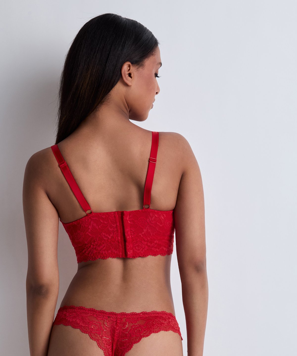 Sans armatures, le soutien-gorge triangle brassière confort Rosessencedéploie une dentelle florale élégante de l’épaule à la taille dans une forme bustier moderne qui assure un maintien optimal. Sexy, il offre un dos largement ouvert et un décolleté profond, souligné à l’entregorge par un bijou doré avec strass élégant.