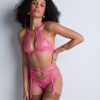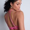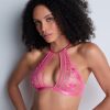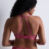 Sans armatures, le soutien-gorge brassière Rules of Attraction déploie sa broderie originale jusqu’à l’épaule, mise en valeur par une attache tour du cou résolument tendance. Profond et sexy, le décolleté est souligné par un bijou doré à l’entregorge. Derrière, les bretelles offrent un effet graphique qui dévoile sensuellement le dos.
