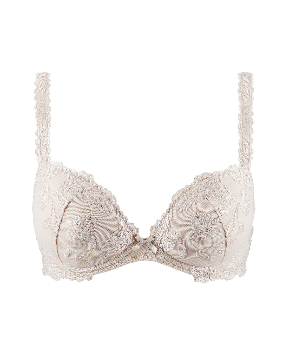 Toute nouvelle forme de la ligne, le soutien-gorge plunge coussinets Softessence déploie une broderie 100 % recyclée dans un motif floral à l’aspect velours, tout en séduction. Disponible dans un coloris nude raffiné ou noir intemporel, il offre un décolleté profond et sexy, élégamment arrondi, idéal pour les petites poitrines comme pour les plus importantes, renforcé par un dos large pensé pour un confort et un maintien parfaits.