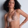 Galbant et soulignant la poitrine de sa broderie élégante aux fils irisés, le soutien-gorge plunge coque Sound of Heart offre un effet push-up naturel confortable et sexy. Moderne, il présente un décolleté dont la profondeur est accentuée par l’écaille droite qui l’encadre et le bijou doré martelé qui illumine l’entregorge.