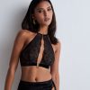 Offrant une forme souple, confortable et légère, la brassière The night before n’en présente pas moins un décolleté vertigineux, résolument sexy, souligné par un bijou doré et surmonté par un tour du cou original. Dans le dos, une découpe graphique laisse entrevoir la peau pour une silhouette tout en sensualité.