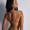 - Tubes dorés qui habillent le triple départ des bretelles pour souligner le style bohème