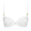 - Une laize graphique vient dénoter les rondeurs de la broderie et laisse percevoir la peau par transparence