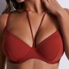 Disponible jusqu’au bonnet E, le haut de maillot de bain plunge coque Summer Journey offre un effet push-up naturel. Assurant confort et maintien grâce à ses bretelles droites, joliment divisées en deux dans le dos, il habille son décolleté ouvert, profond et sexy d’un jeu de liens tressés très original.