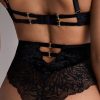 Remontant jusqu’au nombril pour une silhouette naturellement galbée, la culotte très haute The night before associe une dentelle au dessin animalier sexy à un velours moiré doux et confortable. Dans le dos, elle se pare d’une ouverture soulignée par un bijou martelé moderne qui illumine sensuellement le creux des reins.