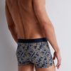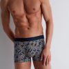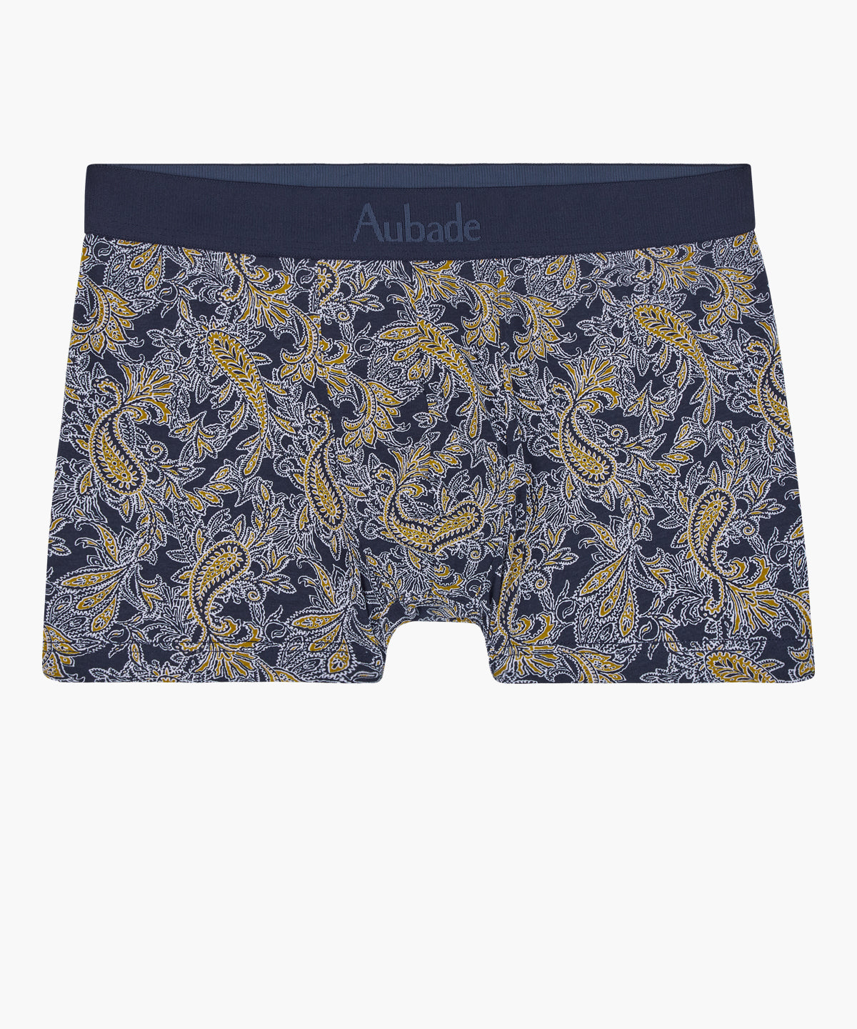 Sans coutures sur les côtés et entièrement en coton biologique avec élasthanne, le boxer Paisley offre un modèle sexy et confortable, certifié GOTS® (EGL n° 241363). Revisitant l’incontournable motif cachemire, il se dote d’une touche d’ocre originale sur un fond marine très élégant, rehaussé par une ceinture ton sur ton.