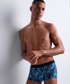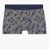 Sans coutures sur les côtés et entièrement en coton biologique avec élasthanne, le boxer Paisley offre un modèle sexy et confortable, certifié GOTS® (EGL n° 241363). Revisitant l’incontournable motif cachemire, il se dote d’une touche d’ocre originale sur un fond marine très élégant, rehaussé par une ceinture ton sur ton.