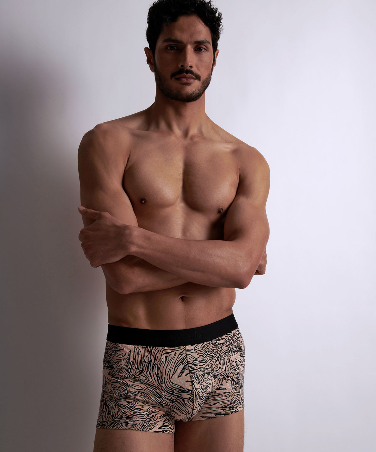 Pendant de la ligne de nightwear Smocky Night, le trunk Féline surfe sur la tendance des imprimés animaliers dans une version plus graphique et plus originale. Sa matière douce en coton, sans coutures, procure une sensation de confort absolu que vient renforcer la doublure à l’entrejambe pour un maintien optimal.