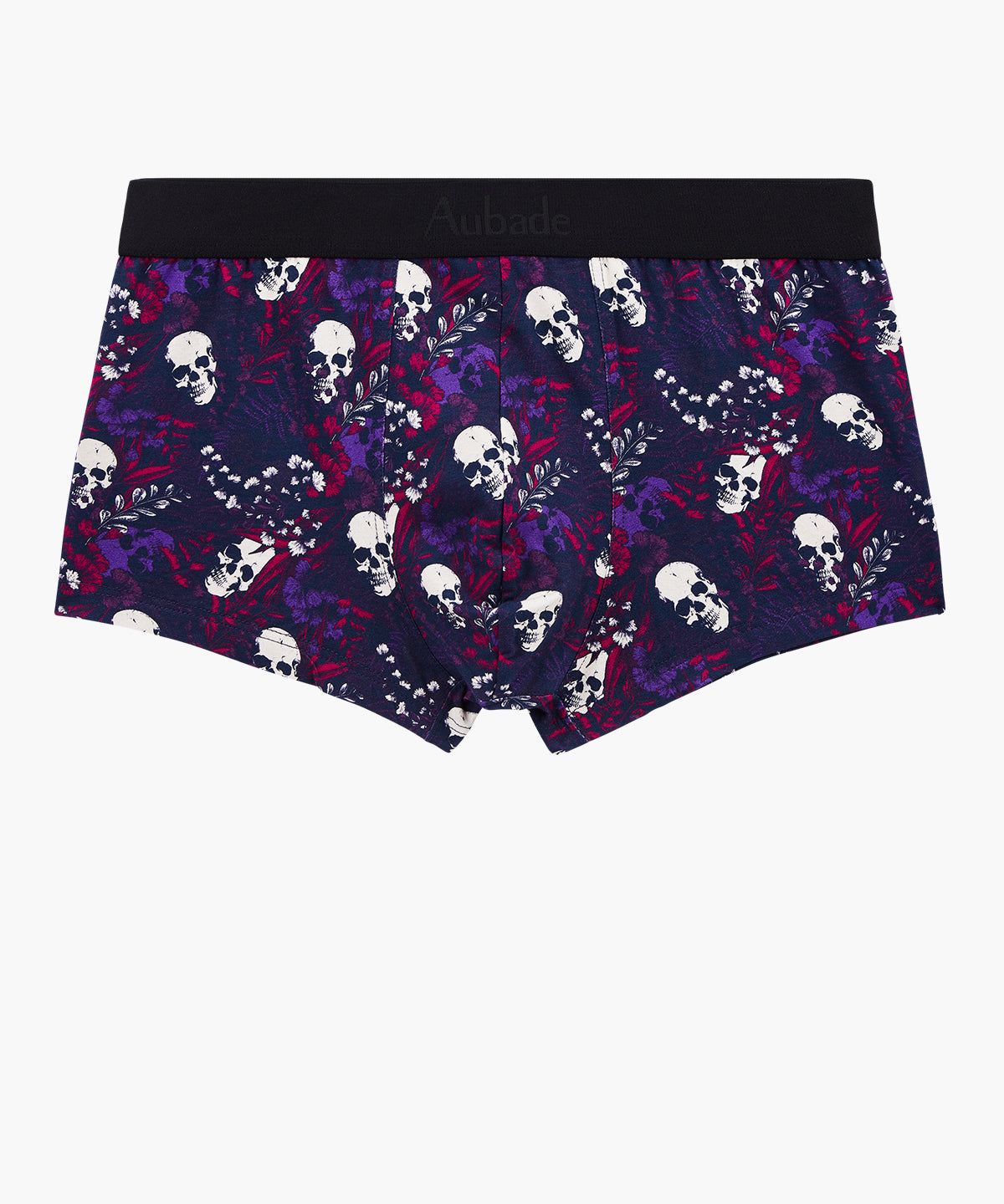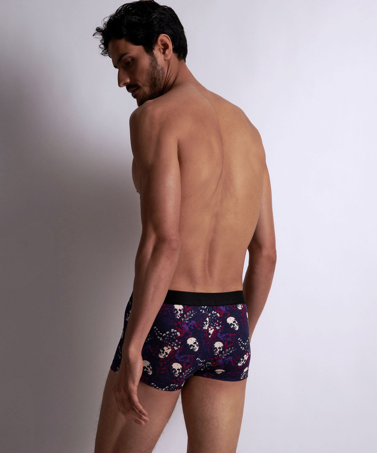 Très tendance dans ses coloris comme dans ses motifs têtes de mort associées à des fleurs que l’on imagine volontiers vénéneuses, le trunk Flower Skull est un sous-vêtement moderne et original. Il assure un confort absolu au quotidien avec son renforcement à l’entrejambe et sa ceinture élastique à la taille.